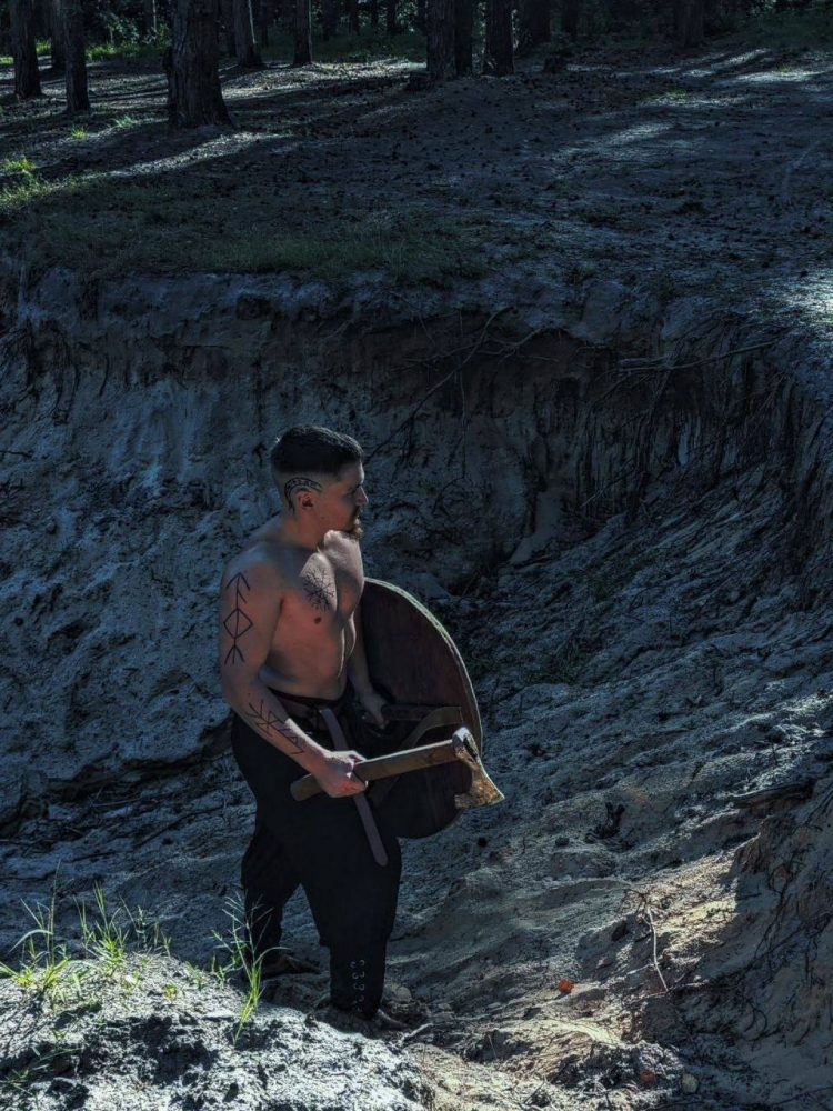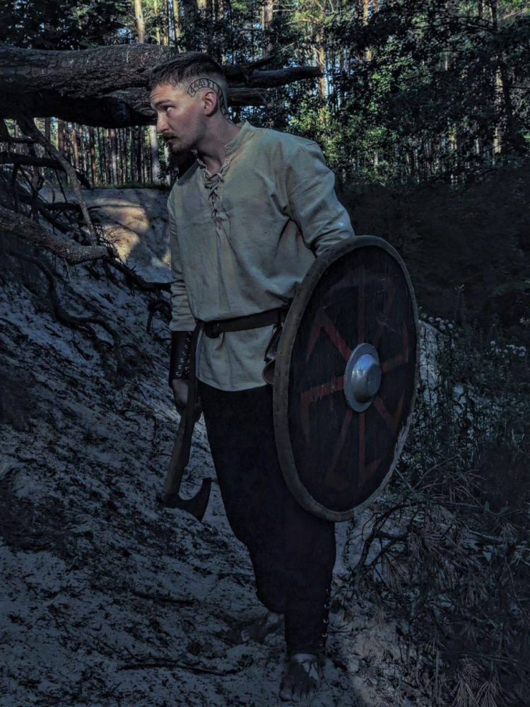 «Я очень люблю различную мифологию. Когда я начал работать, купил себе костюм по сериалу «Викинги»: рубаха, наручи, пояс и штаны. Сделанные мной щит и топор отлично дополнили этот образ, и я сделал стилизованную фотосессию. До этого иногда сам себя фотографировал, где-то снимали родители, а последнюю фотосессию сделала для меня девушка», – рассказал молодой человек.
