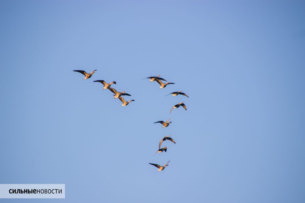 Во время миграции некоторые гуси поднимаются до восьми километров, почти как пассажирские самолеты. На таких высотах воздух разрежен, а температура падает до минус 40, но гуси справляются благодаря мощным крыльям и специальной системе дыхания. За день стая может пролететь 700 километров. Некоторые птицы улетают на зимовку в южную и западную Европу, а часть птиц достигает Испании, Франции и даже Великобритании.